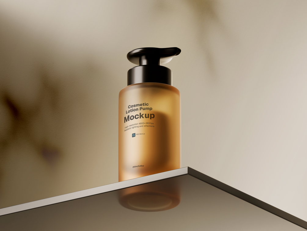 A high-quality and realistic cosmetic lotion pump mockup, perfect for showcasing skincare, lotion, or beauty packaging designs. The clean setup and soft lighting highlight every detail of your label, giving your presentation a professional and premium look.