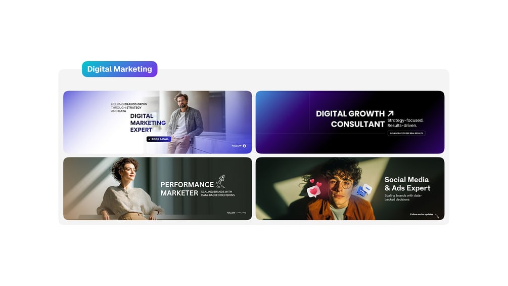 Upgrade your X profile with this clean, modern banner collection. You get sixteen professionally designed headers across four categories: Digital Marketing, Tech & Developers, Fitness & Wellness, and Business Coaches. Each template is easy to edit in Canva, so you can change text, colors, and images in minutes. Perfect for creators, freelancers, and professionals who want a simple way to look polished and stand out.